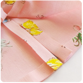 布を裁断するときに、耳の部分(両布端のほつれないようになっているところ)を利用すれば、ほつれ止めの処理は片方だけで済みます。