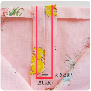 あきどまりのすこし下(3㎜~5㎜)まで縫い、
