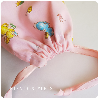 隠しマチつき裏地なしの巾着ができあがりました♪